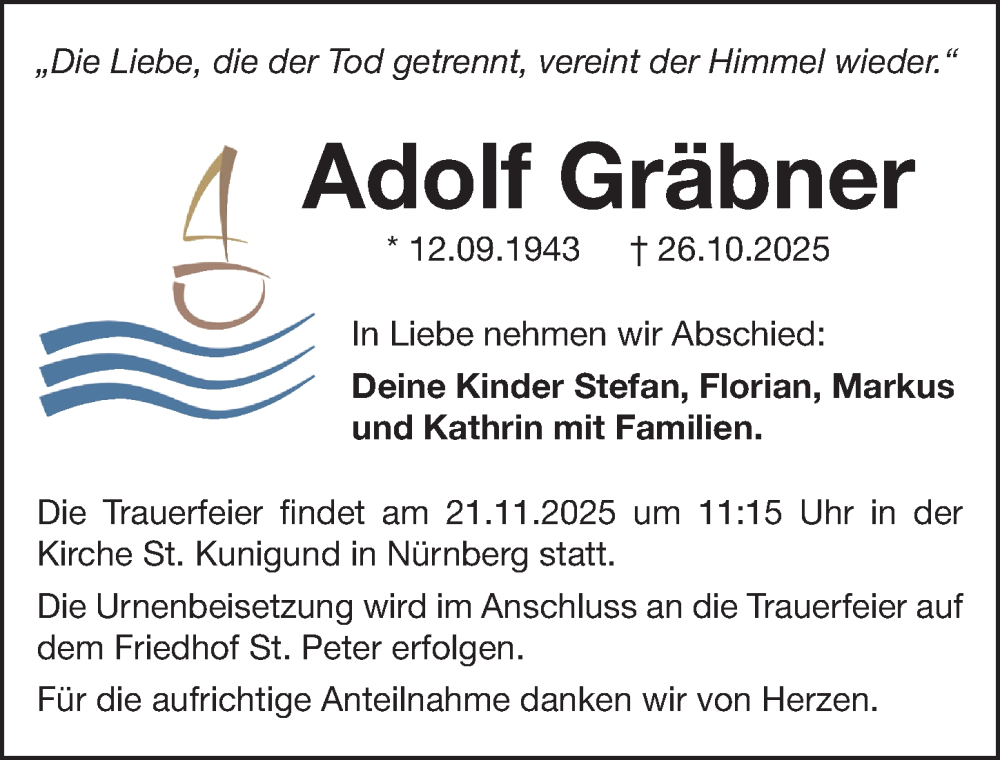 Hier finden Sie alle Traueranzeigen aus der Zeitung, die bisher für Adolf Gräbner erschienen sind. Weitere Traueranzeigen, die in der Zeitung erscheinen, werden hier ebenfalls aufgelistet