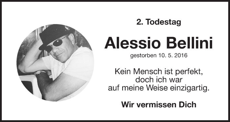 Hier finden Sie alle Traueranzeigen aus der Zeitung, die bisher für Alessio Bellini erschienen sind. Weitere Traueranzeigen, die in der Zeitung erscheinen, werden hier ebenfalls aufgelistet