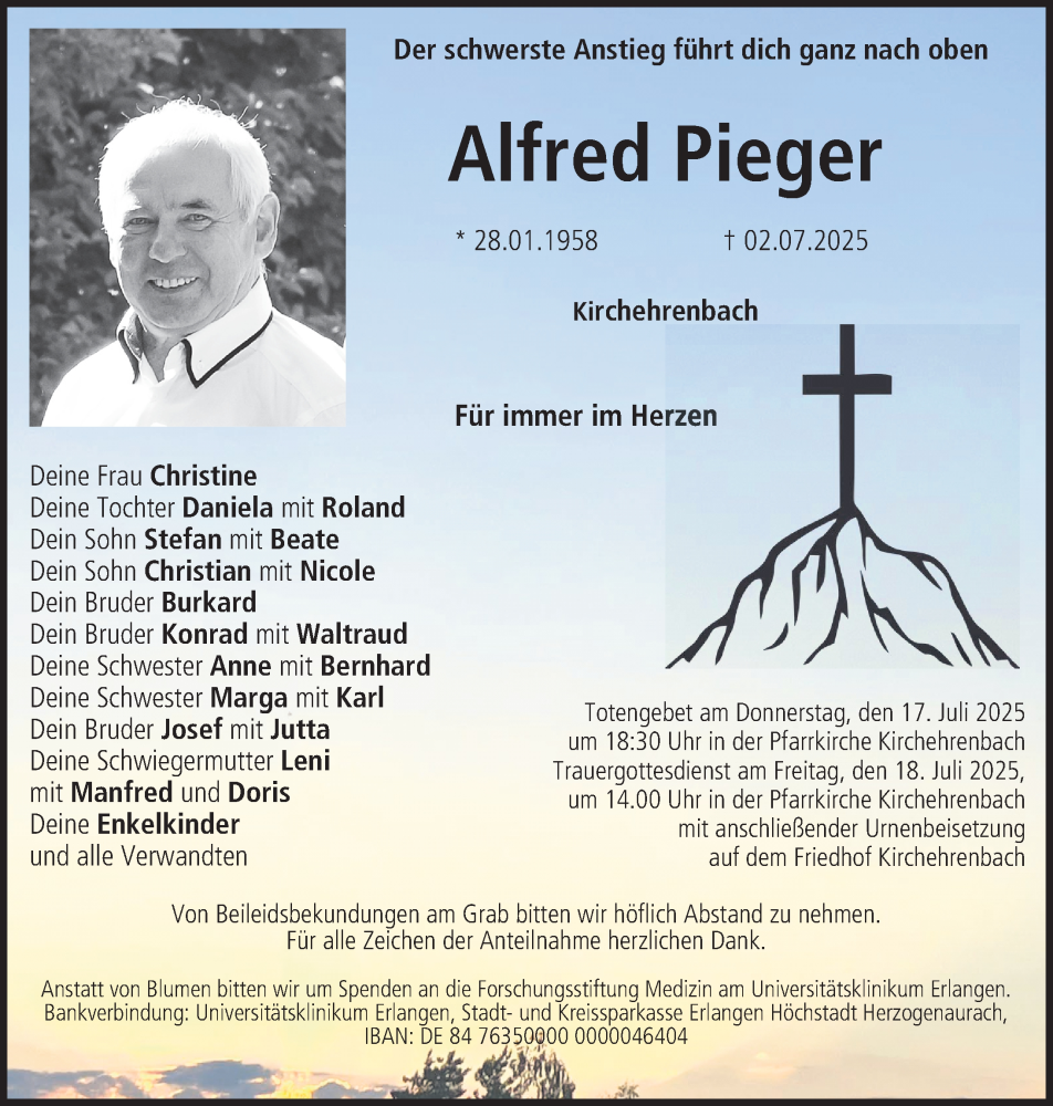 Hier finden Sie alle Traueranzeigen aus der Zeitung, die bisher für Alfred Pieger erschienen sind. Weitere Traueranzeigen, die in der Zeitung erscheinen, werden hier ebenfalls aufgelistet