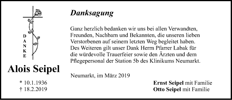 Hier finden Sie alle Traueranzeigen aus der Zeitung, die bisher für Alois Seipel erschienen sind. Weitere Traueranzeigen, die in der Zeitung erscheinen, werden hier ebenfalls aufgelistet