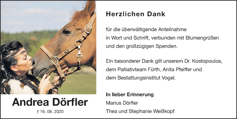 Hier finden Sie alle Traueranzeigen aus der Zeitung, die bisher für Andrea Dörfler erschienen sind. Weitere Traueranzeigen, die in der Zeitung erscheinen, werden hier ebenfalls aufgelistet