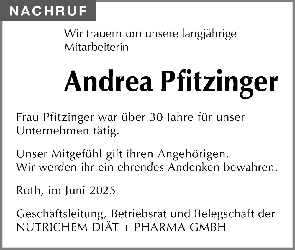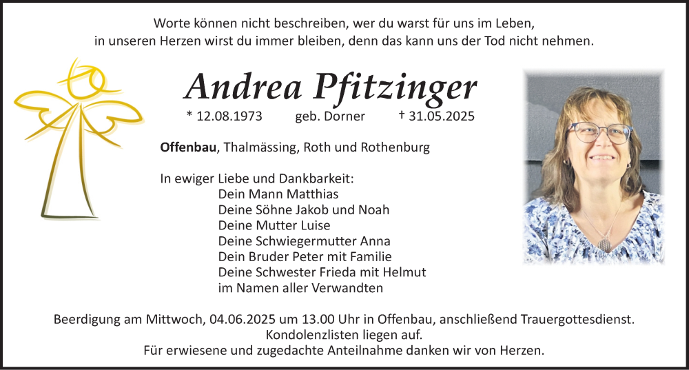 Hier finden Sie alle Traueranzeigen aus der Zeitung, die bisher für Andrea Pfitzinger erschienen sind. Weitere Traueranzeigen, die in der Zeitung erscheinen, werden hier ebenfalls aufgelistet