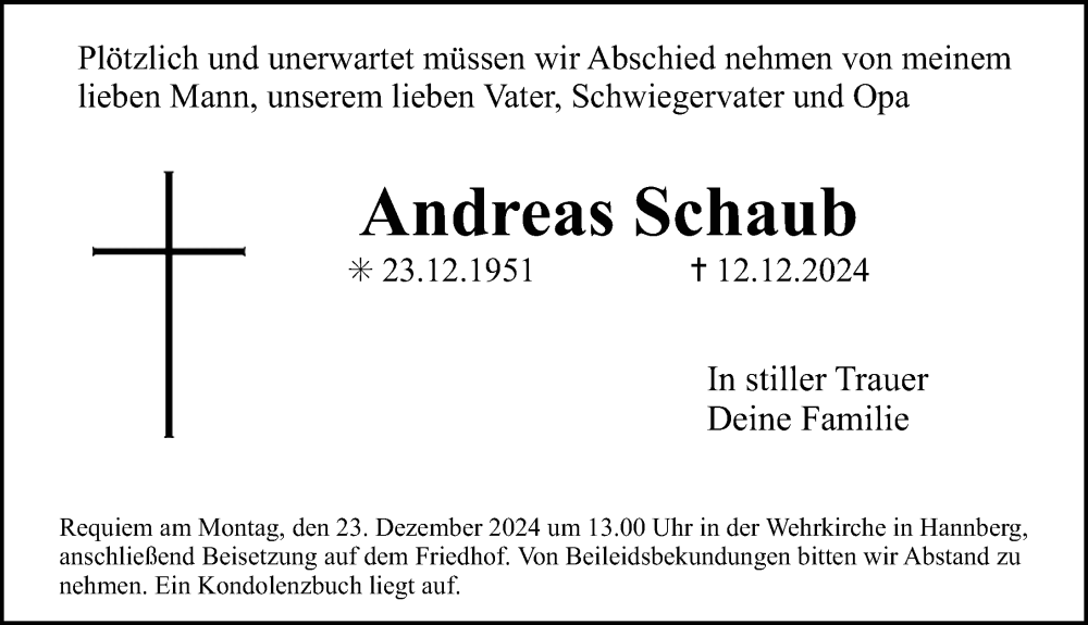 Hier finden Sie alle Traueranzeigen aus der Zeitung, die bisher für Andreas Schaub erschienen sind. Weitere Traueranzeigen, die in der Zeitung erscheinen, werden hier ebenfalls aufgelistet