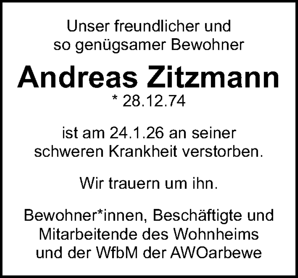 Hier finden Sie alle Traueranzeigen aus der Zeitung, die bisher für Andreas Zitzmann erschienen sind. Weitere Traueranzeigen, die in der Zeitung erscheinen, werden hier ebenfalls aufgelistet