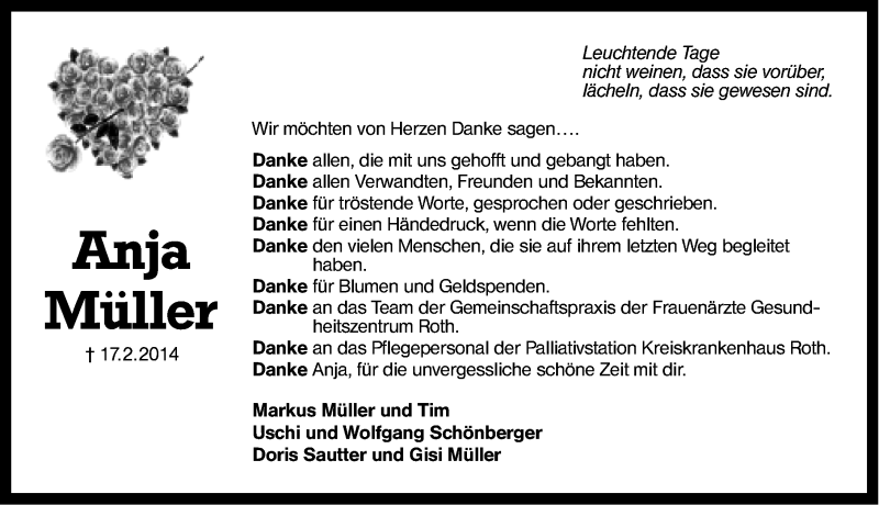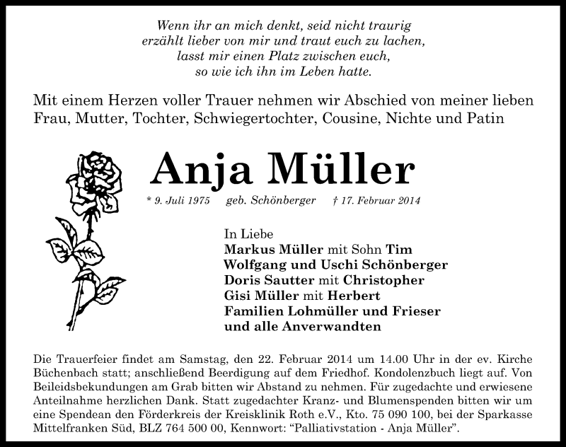 Hier finden Sie alle Traueranzeigen aus der Zeitung, die bisher für Anja Müller erschienen sind. Weitere Traueranzeigen, die in der Zeitung erscheinen, werden hier ebenfalls aufgelistet