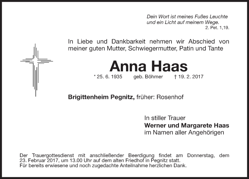 Hier finden Sie alle Traueranzeigen aus der Zeitung, die bisher für Anna Haas erschienen sind. Weitere Traueranzeigen, die in der Zeitung erscheinen, werden hier ebenfalls aufgelistet