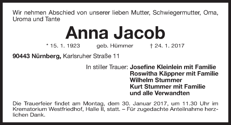 Hier finden Sie alle Traueranzeigen aus der Zeitung, die bisher für Anna Jacob erschienen sind. Weitere Traueranzeigen, die in der Zeitung erscheinen, werden hier ebenfalls aufgelistet
