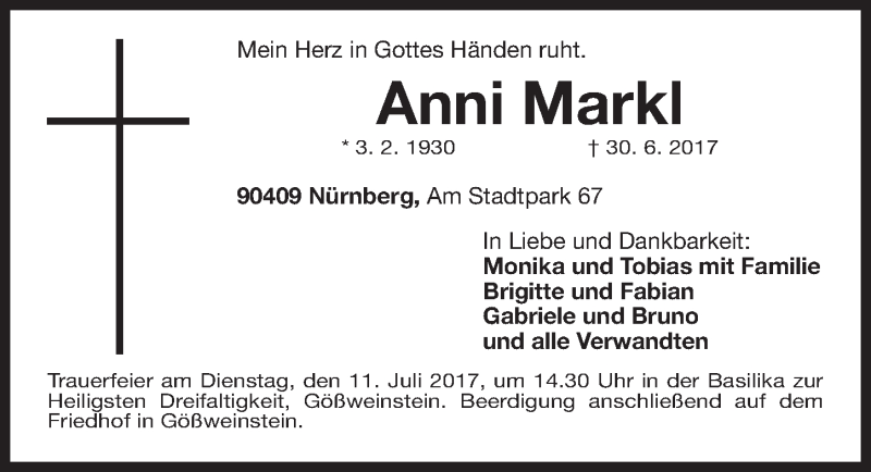 Hier finden Sie alle Traueranzeigen aus der Zeitung, die bisher für Anni Markl erschienen sind. Weitere Traueranzeigen, die in der Zeitung erscheinen, werden hier ebenfalls aufgelistet