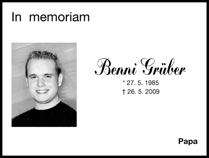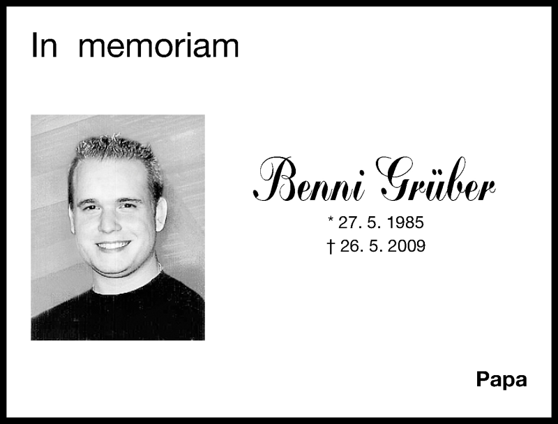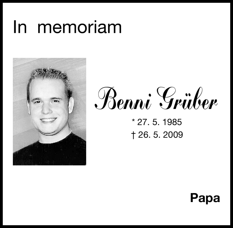 Hier finden Sie alle Traueranzeigen aus der Zeitung, die bisher für Benni Grüber erschienen sind. Weitere Traueranzeigen, die in der Zeitung erscheinen, werden hier ebenfalls aufgelistet