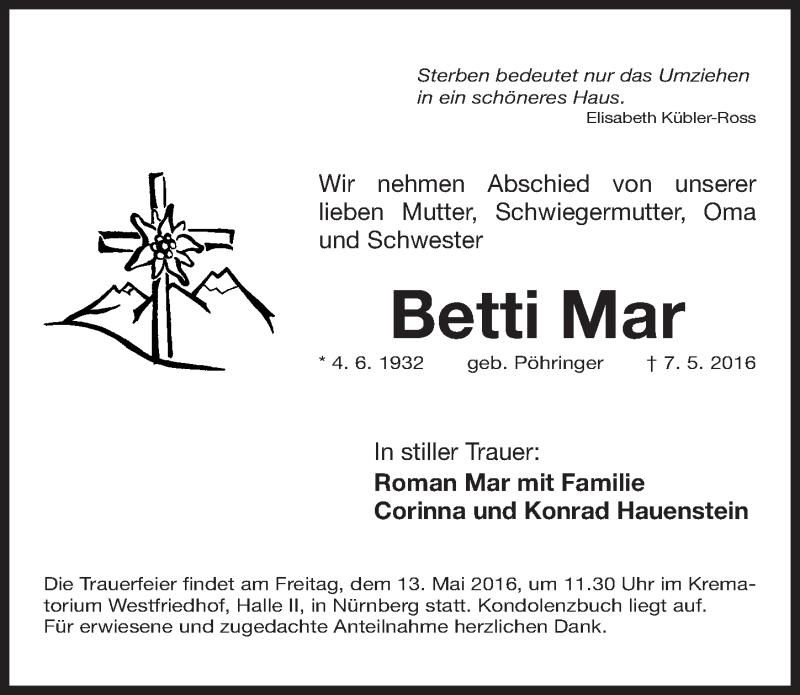 Hier finden Sie alle Traueranzeigen aus der Zeitung, die bisher für Betti Mar erschienen sind. Weitere Traueranzeigen, die in der Zeitung erscheinen, werden hier ebenfalls aufgelistet