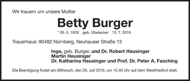 Hier finden Sie alle Traueranzeigen aus der Zeitung, die bisher für Betty Burger erschienen sind. Weitere Traueranzeigen, die in der Zeitung erscheinen, werden hier ebenfalls aufgelistet