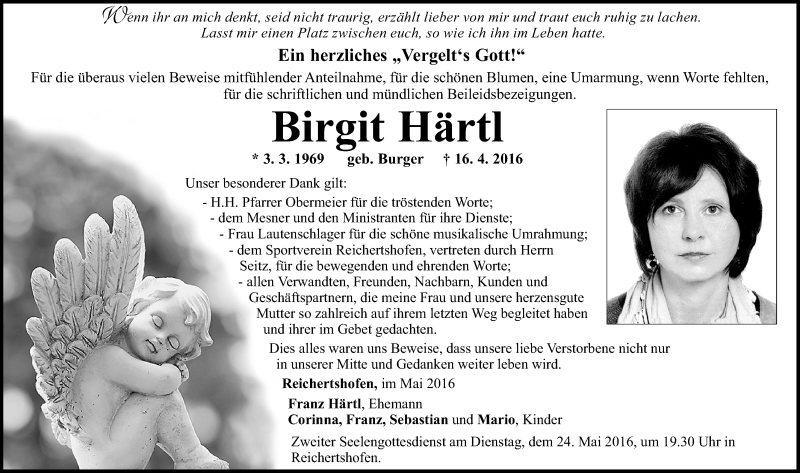 Hier finden Sie alle Traueranzeigen aus der Zeitung, die bisher für Birgit Härtl erschienen sind. Weitere Traueranzeigen, die in der Zeitung erscheinen, werden hier ebenfalls aufgelistet