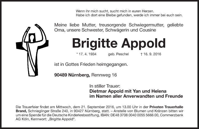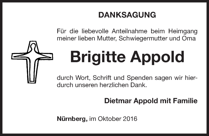 Hier finden Sie alle Traueranzeigen aus der Zeitung, die bisher für Brigitte Appold erschienen sind. Weitere Traueranzeigen, die in der Zeitung erscheinen, werden hier ebenfalls aufgelistet