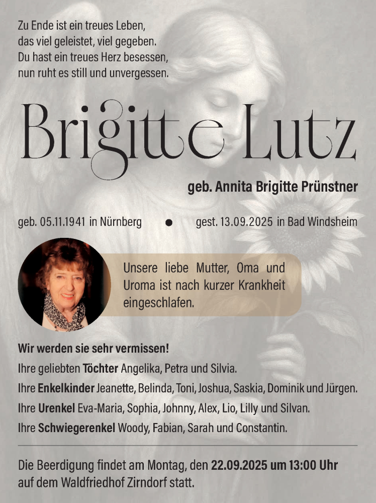 Hier finden Sie alle Traueranzeigen aus der Zeitung, die bisher für Brigitte Lutz erschienen sind. Weitere Traueranzeigen, die in der Zeitung erscheinen, werden hier ebenfalls aufgelistet