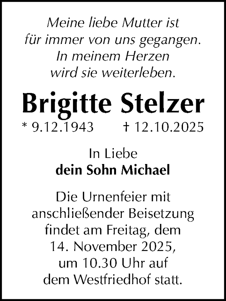 Hier finden Sie alle Traueranzeigen aus der Zeitung, die bisher für Brigitte Stelzer erschienen sind. Weitere Traueranzeigen, die in der Zeitung erscheinen, werden hier ebenfalls aufgelistet