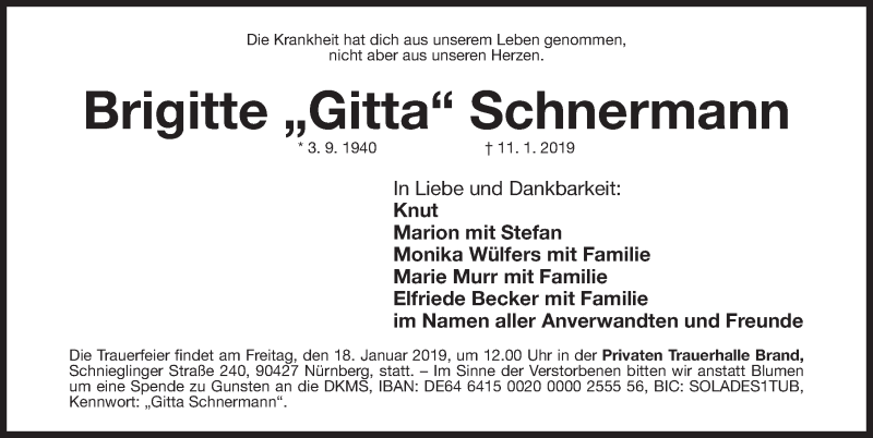 Hier finden Sie alle Traueranzeigen aus der Zeitung, die bisher für Brigitte Gitta Schnermann erschienen sind. Weitere Traueranzeigen, die in der Zeitung erscheinen, werden hier ebenfalls aufgelistet