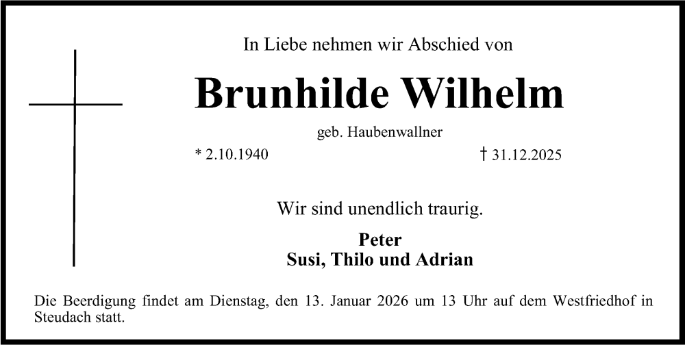 Hier finden Sie alle Traueranzeigen aus der Zeitung, die bisher für Brunhilde Wilhelm erschienen sind. Weitere Traueranzeigen, die in der Zeitung erscheinen, werden hier ebenfalls aufgelistet