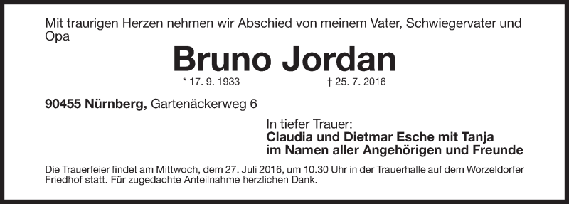 Hier finden Sie alle Traueranzeigen aus der Zeitung, die bisher für Bruno Jordan erschienen sind. Weitere Traueranzeigen, die in der Zeitung erscheinen, werden hier ebenfalls aufgelistet