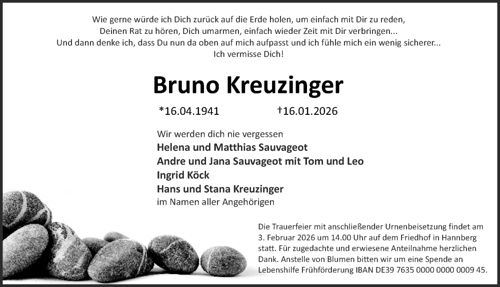 Hier finden Sie alle Traueranzeigen aus der Zeitung, die bisher für Bruno Kreuzinger erschienen sind. Weitere Traueranzeigen, die in der Zeitung erscheinen, werden hier ebenfalls aufgelistet