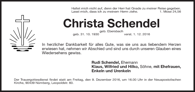 Hier finden Sie alle Traueranzeigen aus der Zeitung, die bisher für Christa Schendel erschienen sind. Weitere Traueranzeigen, die in der Zeitung erscheinen, werden hier ebenfalls aufgelistet