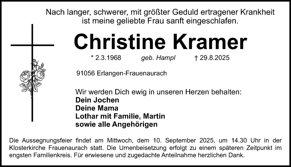 Hier finden Sie alle Traueranzeigen aus der Zeitung, die bisher für Christine Kramer erschienen sind. Weitere Traueranzeigen, die in der Zeitung erscheinen, werden hier ebenfalls aufgelistet