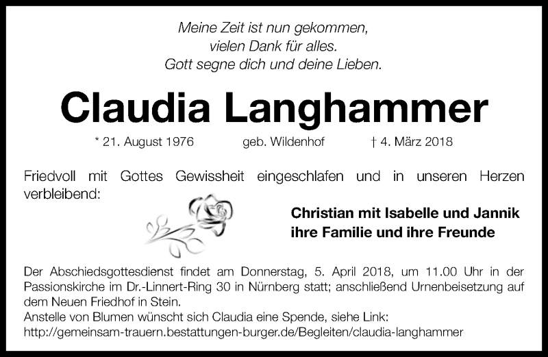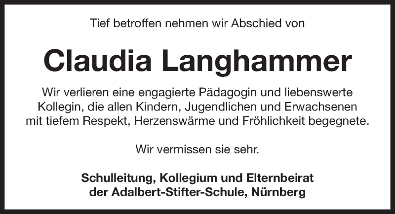 Hier finden Sie alle Traueranzeigen aus der Zeitung, die bisher für Claudia Langhammer erschienen sind. Weitere Traueranzeigen, die in der Zeitung erscheinen, werden hier ebenfalls aufgelistet