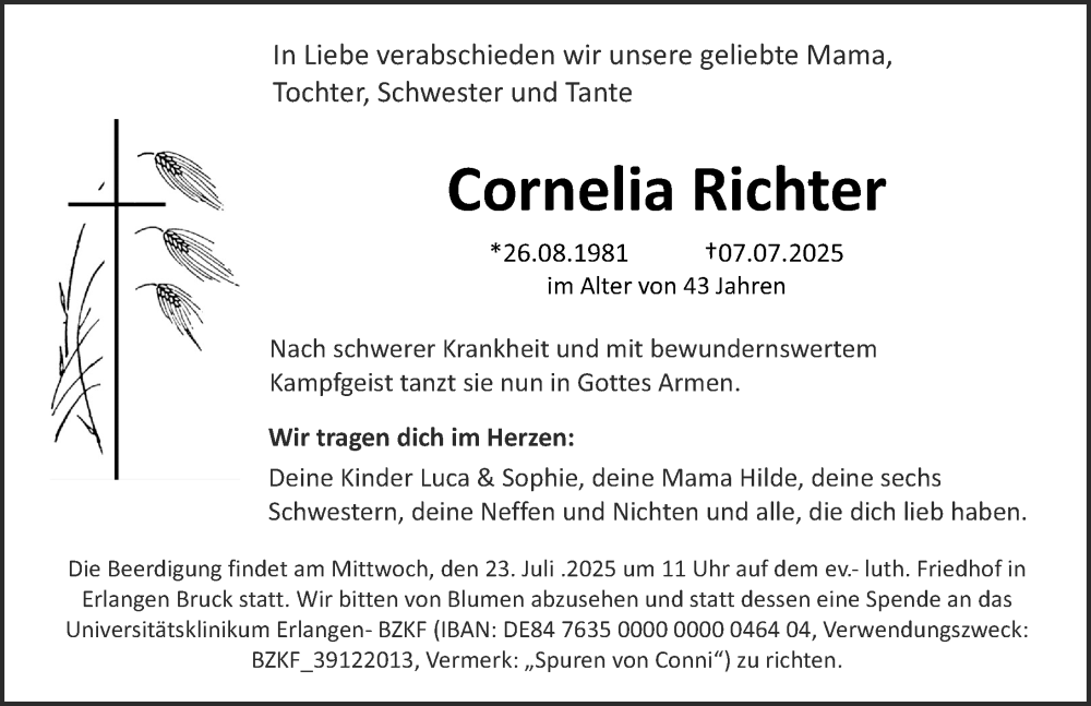 Hier finden Sie alle Traueranzeigen aus der Zeitung, die bisher für Cornelia Richter erschienen sind. Weitere Traueranzeigen, die in der Zeitung erscheinen, werden hier ebenfalls aufgelistet