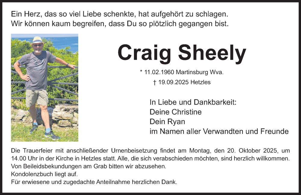 Hier finden Sie alle Traueranzeigen aus der Zeitung, die bisher für Craig Sheely erschienen sind. Weitere Traueranzeigen, die in der Zeitung erscheinen, werden hier ebenfalls aufgelistet