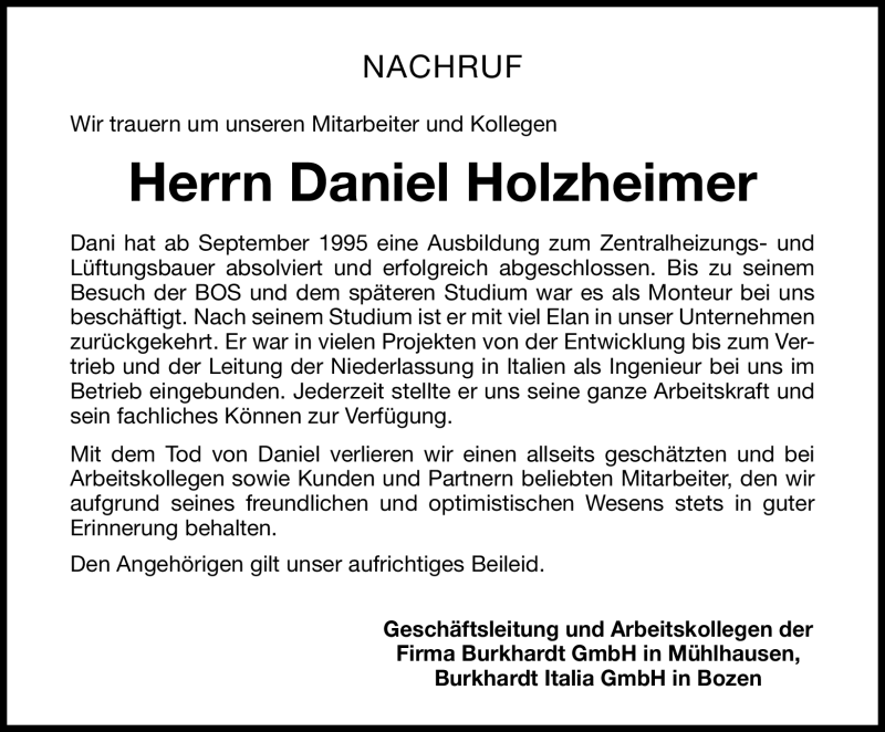 Hier finden Sie alle Traueranzeigen aus der Zeitung, die bisher für Daniel Holzheimer erschienen sind. Weitere Traueranzeigen, die in der Zeitung erscheinen, werden hier ebenfalls aufgelistet