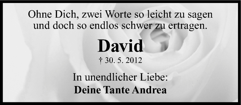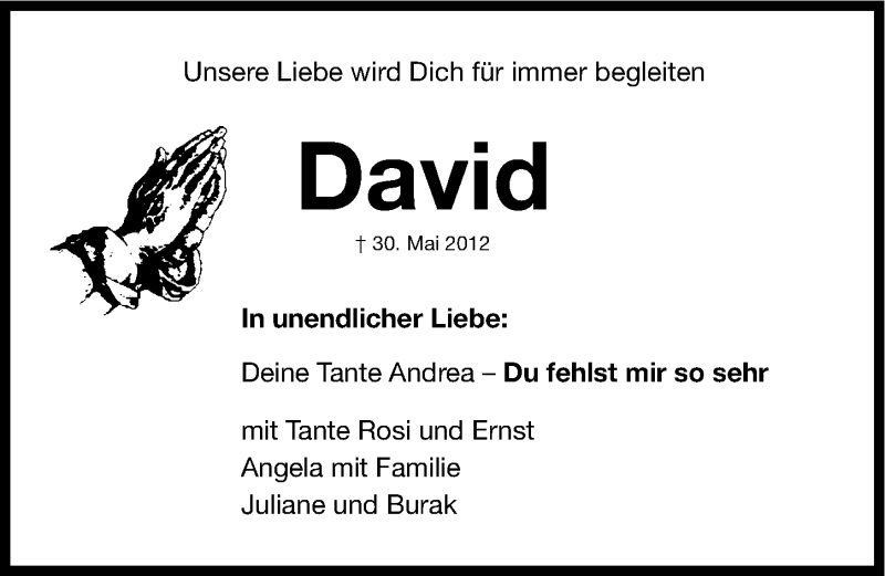 Hier finden Sie alle Traueranzeigen aus der Zeitung, die bisher für David Müller erschienen sind. Weitere Traueranzeigen, die in der Zeitung erscheinen, werden hier ebenfalls aufgelistet