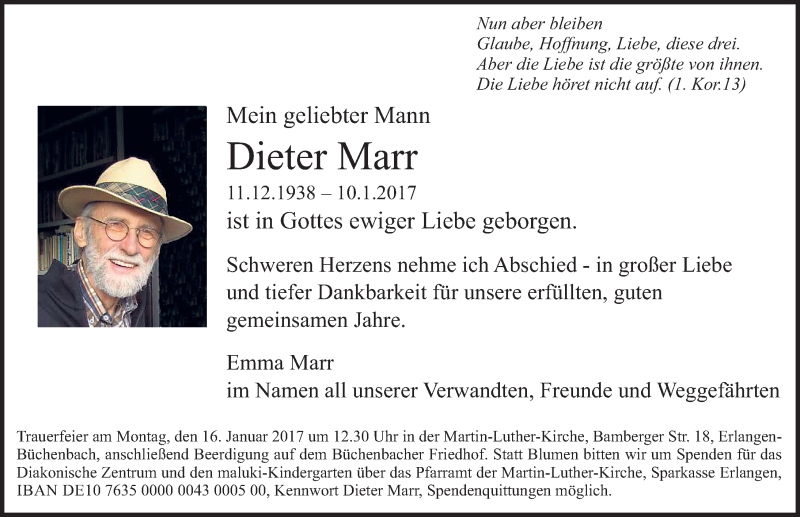 Hier finden Sie alle Traueranzeigen aus der Zeitung, die bisher für Dieter Marr erschienen sind. Weitere Traueranzeigen, die in der Zeitung erscheinen, werden hier ebenfalls aufgelistet