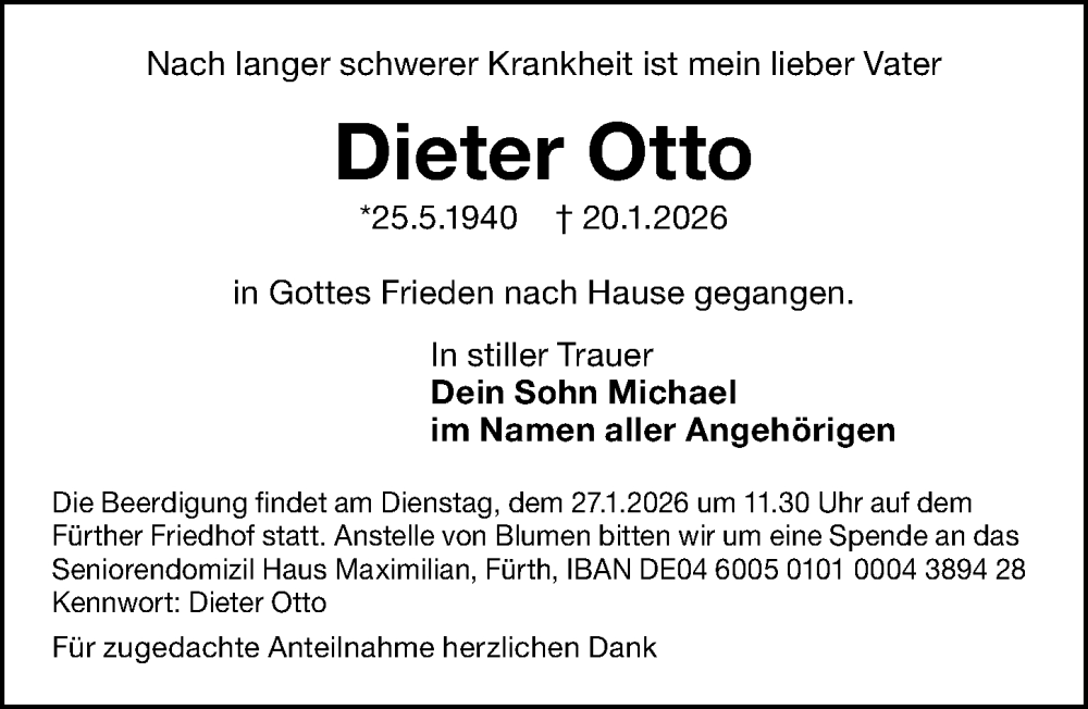 Hier finden Sie alle Traueranzeigen aus der Zeitung, die bisher für Dieter Otto erschienen sind. Weitere Traueranzeigen, die in der Zeitung erscheinen, werden hier ebenfalls aufgelistet