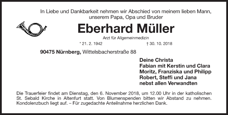 Hier finden Sie alle Traueranzeigen aus der Zeitung, die bisher für Eberhard Müller erschienen sind. Weitere Traueranzeigen, die in der Zeitung erscheinen, werden hier ebenfalls aufgelistet