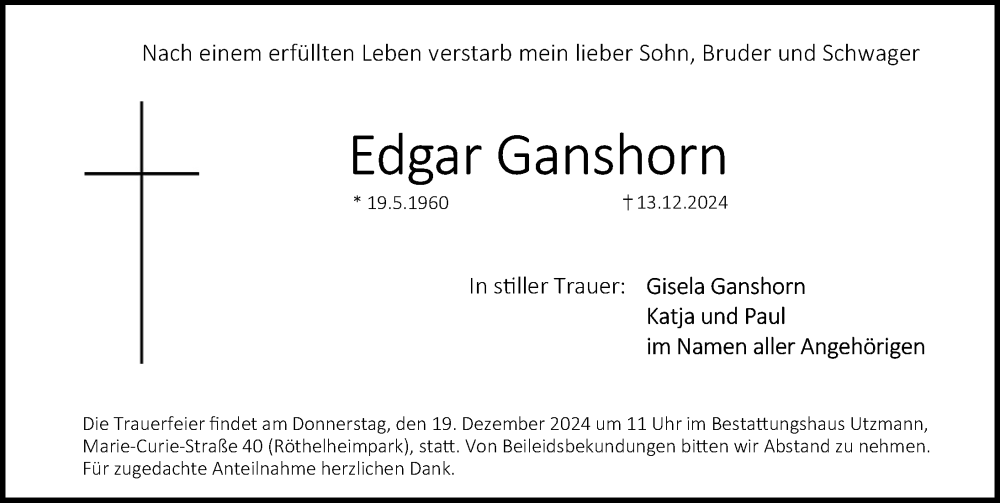 Hier finden Sie alle Traueranzeigen aus der Zeitung, die bisher für Edgar Ganshorn erschienen sind. Weitere Traueranzeigen, die in der Zeitung erscheinen, werden hier ebenfalls aufgelistet