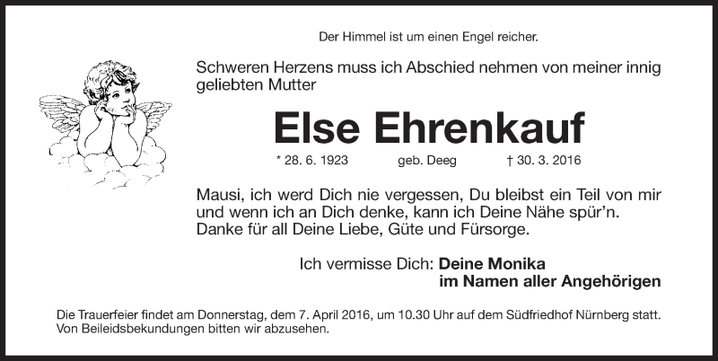 Hier finden Sie alle Traueranzeigen aus der Zeitung, die bisher für Else Ehrenkauf erschienen sind. Weitere Traueranzeigen, die in der Zeitung erscheinen, werden hier ebenfalls aufgelistet