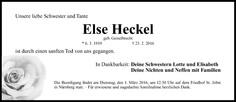 Hier finden Sie alle Traueranzeigen aus der Zeitung, die bisher für Else Heckel erschienen sind. Weitere Traueranzeigen, die in der Zeitung erscheinen, werden hier ebenfalls aufgelistet