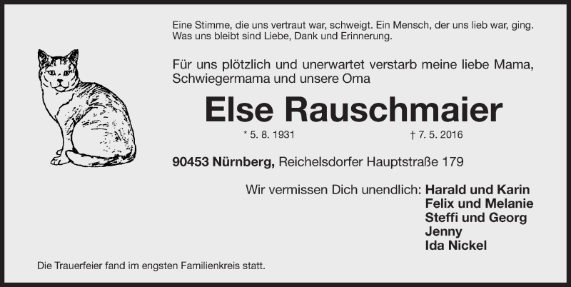 Hier finden Sie alle Traueranzeigen aus der Zeitung, die bisher für Else Rauschmaier erschienen sind. Weitere Traueranzeigen, die in der Zeitung erscheinen, werden hier ebenfalls aufgelistet