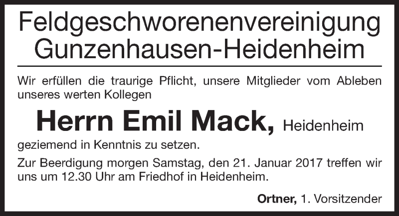 Hier finden Sie alle Traueranzeigen aus der Zeitung, die bisher für Emil Mack erschienen sind. Weitere Traueranzeigen, die in der Zeitung erscheinen, werden hier ebenfalls aufgelistet