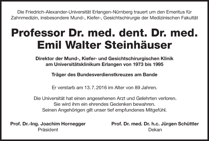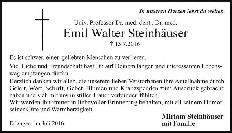Hier finden Sie alle Traueranzeigen aus der Zeitung, die bisher für Emil Walter Steinhäuser erschienen sind. Weitere Traueranzeigen, die in der Zeitung erscheinen, werden hier ebenfalls aufgelistet