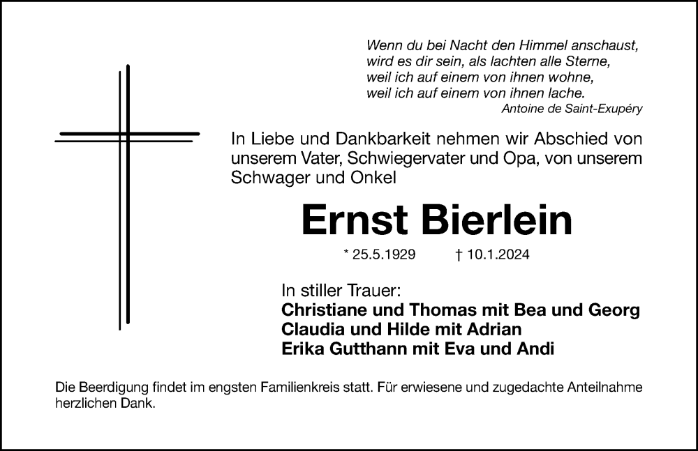 Hier finden Sie alle Traueranzeigen aus der Zeitung, die bisher für Ernst Bierlein erschienen sind. Weitere Traueranzeigen, die in der Zeitung erscheinen, werden hier ebenfalls aufgelistet