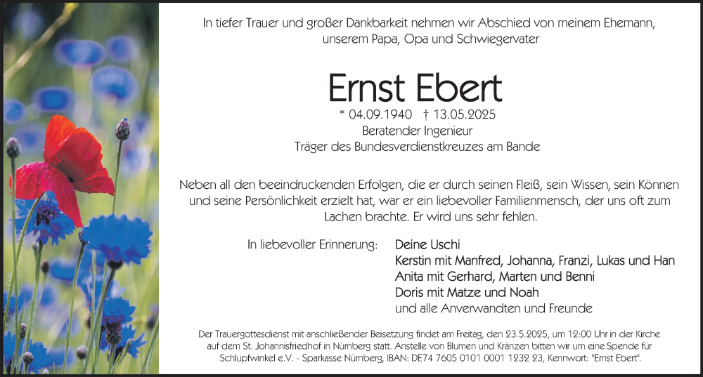 Hier finden Sie alle Traueranzeigen aus der Zeitung, die bisher für Ernst Ebert erschienen sind. Weitere Traueranzeigen, die in der Zeitung erscheinen, werden hier ebenfalls aufgelistet