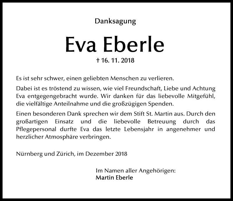 Hier finden Sie alle Traueranzeigen aus der Zeitung, die bisher für Eva Eberle erschienen sind. Weitere Traueranzeigen, die in der Zeitung erscheinen, werden hier ebenfalls aufgelistet