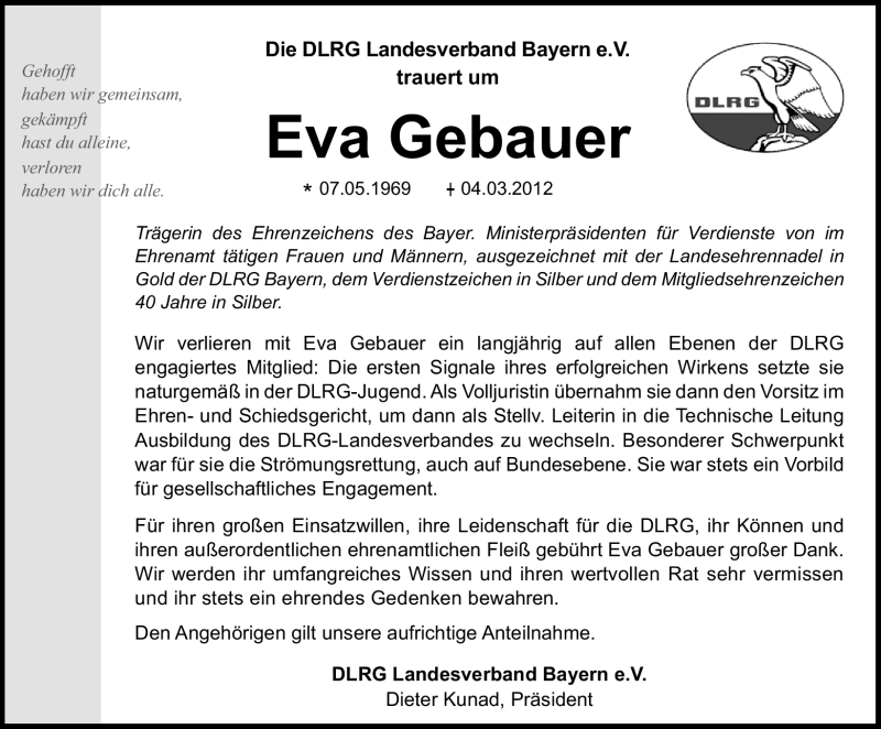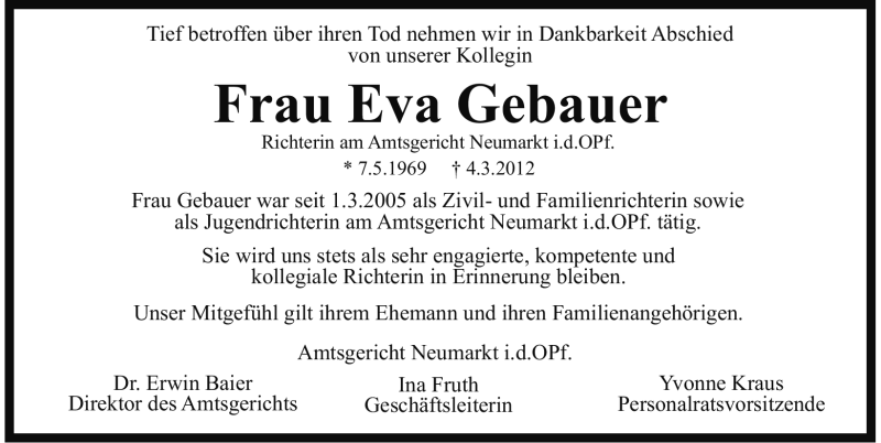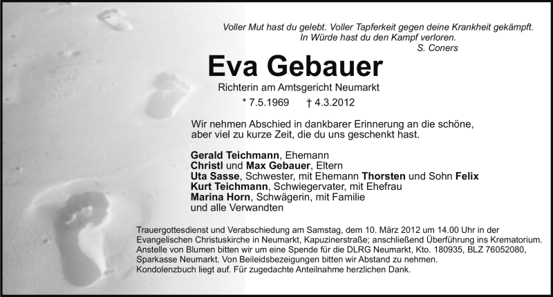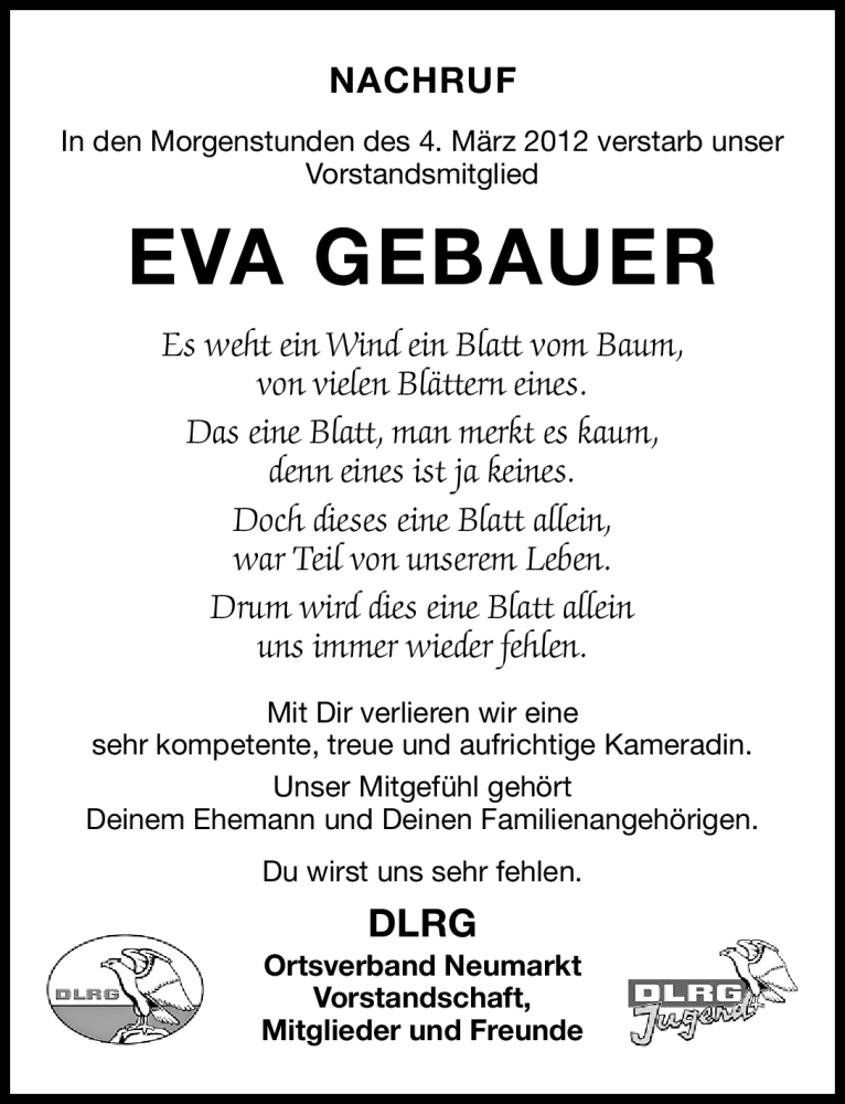 Hier finden Sie alle Traueranzeigen aus der Zeitung, die bisher für Eva Gebauer erschienen sind. Weitere Traueranzeigen, die in der Zeitung erscheinen, werden hier ebenfalls aufgelistet