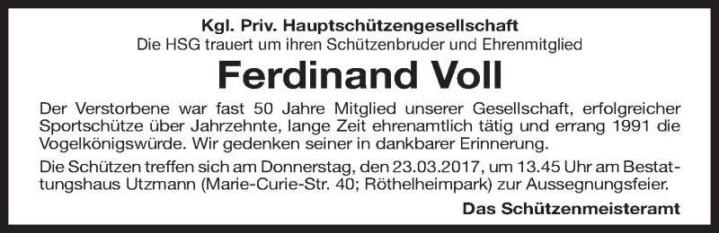 Hier finden Sie alle Traueranzeigen aus der Zeitung, die bisher für Ferdl Voll erschienen sind. Weitere Traueranzeigen, die in der Zeitung erscheinen, werden hier ebenfalls aufgelistet