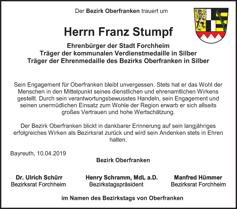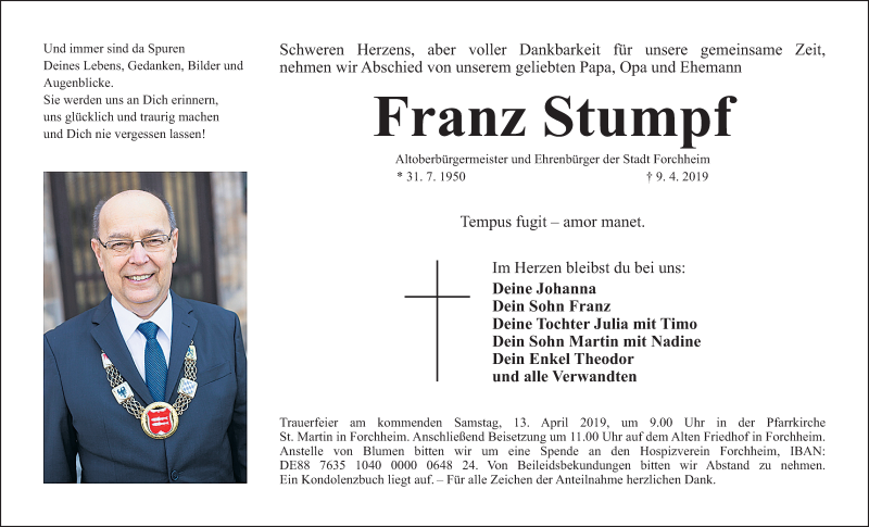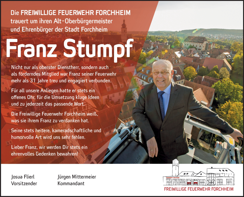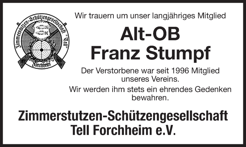 Hier finden Sie alle Traueranzeigen aus der Zeitung, die bisher für Franz Stumpf erschienen sind. Weitere Traueranzeigen, die in der Zeitung erscheinen, werden hier ebenfalls aufgelistet