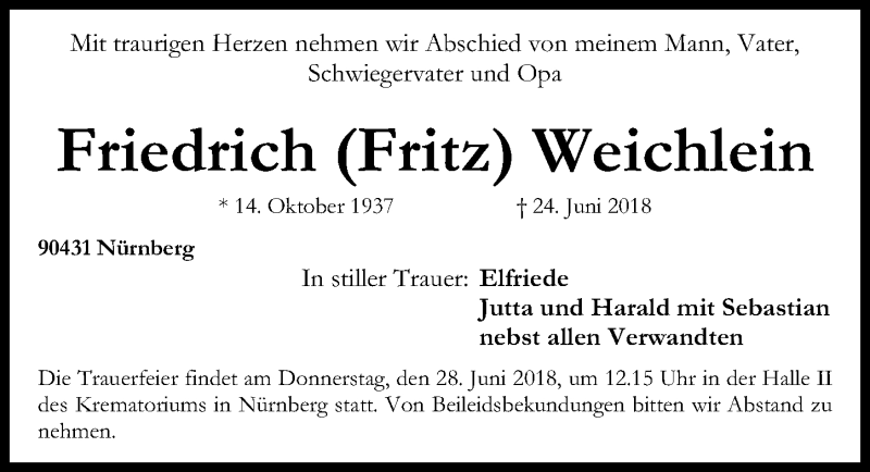Hier finden Sie alle Traueranzeigen aus der Zeitung, die bisher für Friedrich Weichlein erschienen sind. Weitere Traueranzeigen, die in der Zeitung erscheinen, werden hier ebenfalls aufgelistet