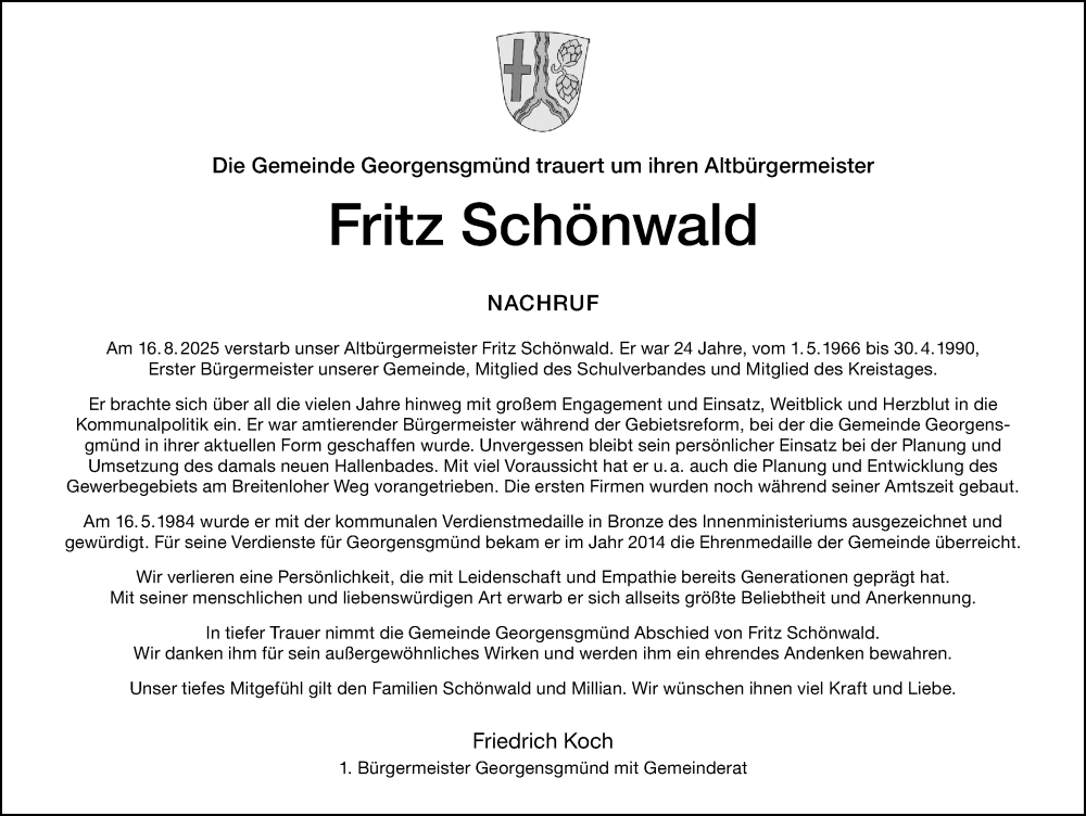 Hier finden Sie alle Traueranzeigen aus der Zeitung, die bisher für Fritz Schönwald erschienen sind. Weitere Traueranzeigen, die in der Zeitung erscheinen, werden hier ebenfalls aufgelistet