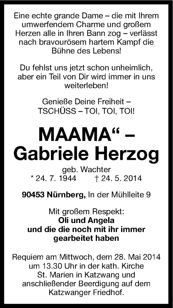 Hier finden Sie alle Traueranzeigen aus der Zeitung, die bisher für Gabriele Herzog erschienen sind. Weitere Traueranzeigen, die in der Zeitung erscheinen, werden hier ebenfalls aufgelistet