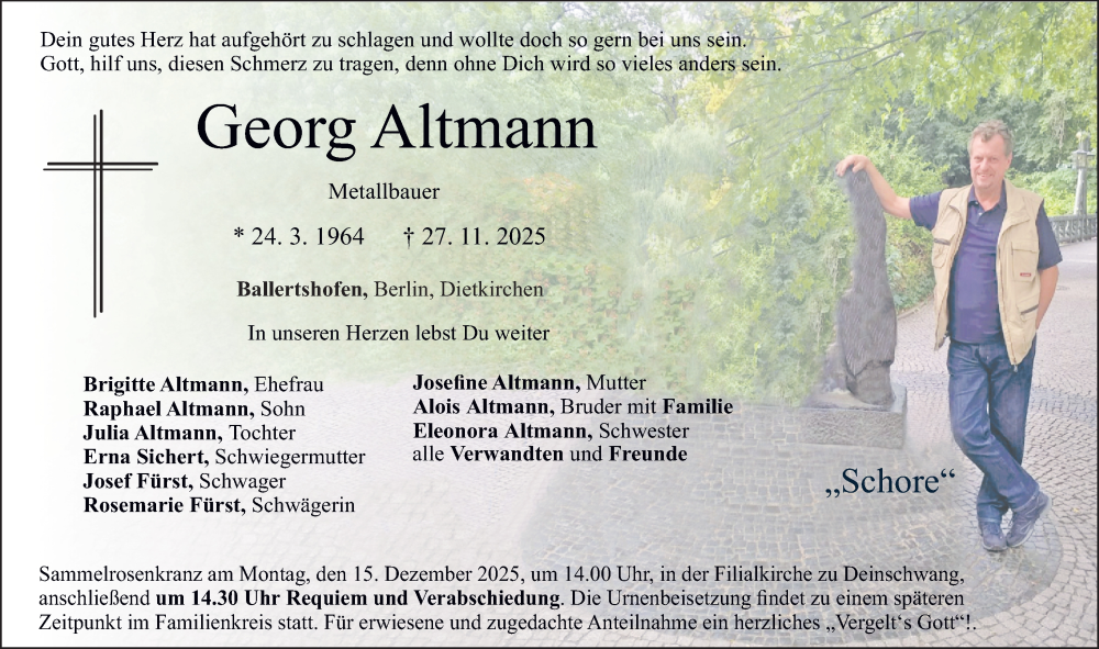Hier finden Sie alle Traueranzeigen aus der Zeitung, die bisher für Georg Altmann erschienen sind. Weitere Traueranzeigen, die in der Zeitung erscheinen, werden hier ebenfalls aufgelistet