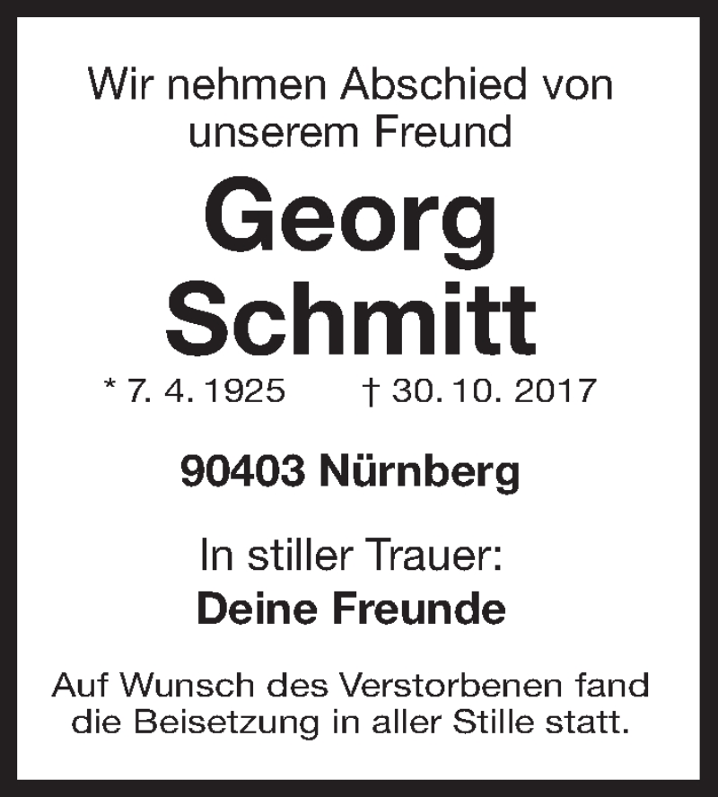 Hier finden Sie alle Traueranzeigen aus der Zeitung, die bisher für Georg Schmitt erschienen sind. Weitere Traueranzeigen, die in der Zeitung erscheinen, werden hier ebenfalls aufgelistet